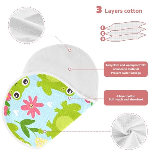 Baby Burp Cloths, Soft Absorbent Burping Cloths for Babies, Cotton Milk Spit Up Rags, Large Size for Newborns, Baby Boys and Girls (Frog Floral Pattern) 3