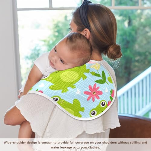 Baby Burp Cloths, Soft Absorbent Burping Cloths for Babies, Cotton Milk Spit Up Rags, Large Size for Newborns, Baby Boys and Girls (Frog Floral Pattern) 6