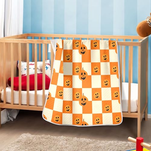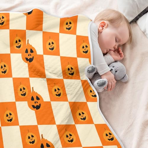 HOT ! Burbuja Orange Checkered Pumpkins Baby Blanket for Boys Girls, Nursery Soft Warm Swaddling Receiving Baby Blankets, 30x40 in Toddler Blanket