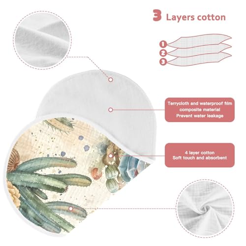 Cacti Pattern Muslin Burp Cloths 22x11 Inch - 4-Layer Organic Cotton & TPU Waterproof Lining, Absorbent Baby Bibs for Boys/Girls with Hanging Loop 4