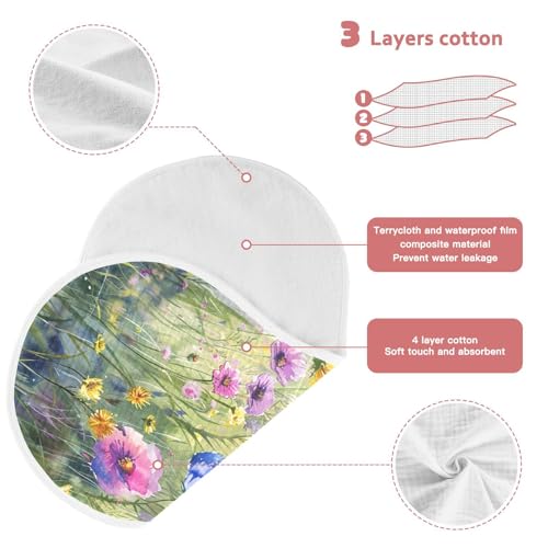 Colorful Wildflowers Muslin Burp Cloths 22x11 Inch - 4-Layer Organic Cotton & TPU Waterproof Lining, Absorbent Baby Bibs for Boys/Girls with Hanging Loop 4