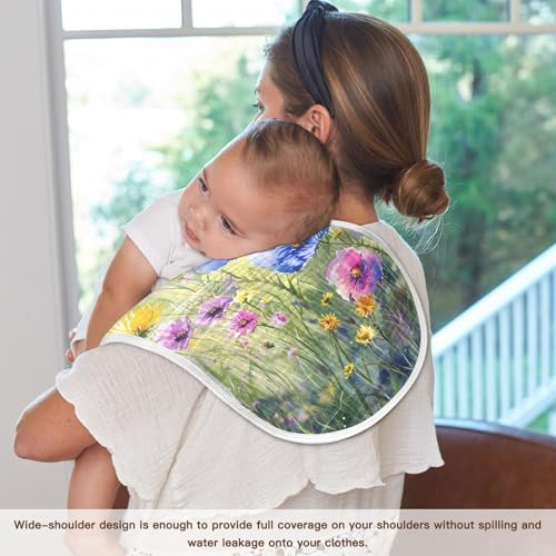 HOT ! Colorful Wildflowers Muslin Burp Cloths 22x11 Inch - 4-Layer Organic Cotton & TPU Waterproof Lining, Absorbent Baby Bibs for Boys/Girls with Hanging Loop