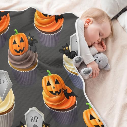 HOT ! Burbuja Halloween Themed Cupcakes Baby Blanket for Boys Girls, Nursery Soft Warm Swaddling Receiving Baby Blankets, 30x40 in Toddler Blanket