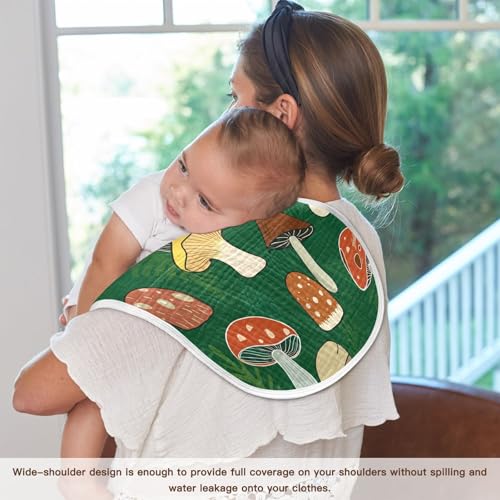 • Good Absorbent - The Mushrooms brup cloths featuring 4 layers of absorbent muslin and fluffy structure design, to quickly absorb spills and drool, keep baby dry and provide soft, comfortable suppor