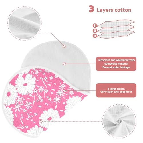 Daisies Small Flowers Pink Burp Cloths for Babies Burp Rag Cotton Spit Up Rag for Babies Newborn 4