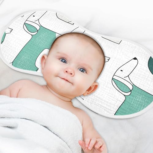 Bolaz Baby Burp Cloths 4 Pack,Cute Green Orange Dog Pattern,Feeding Cloths Face Towel Super Absorbent Soft Cotton Burping Rags Feeding Bibs 5