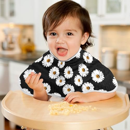 J JOYSAY Flower Daisy Dark Baby Burp Cloths for Boys Girls Large 22''x11'' Cotton 4 Layer Fabric Drool Cloths for Babies one sizex1 1