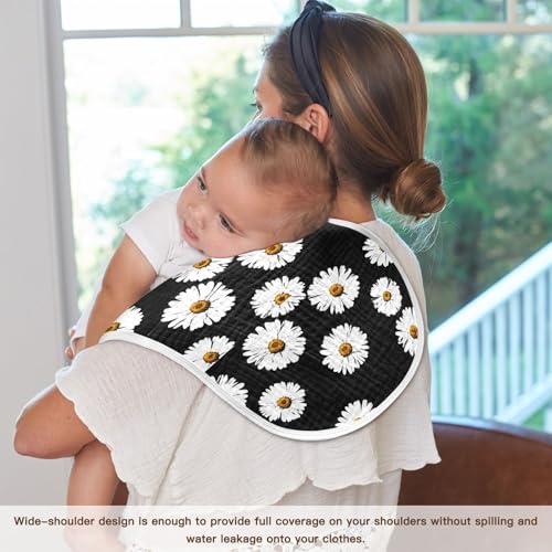 J JOYSAY Flower Daisy Dark Baby Burp Cloths for Boys Girls Large 22''x11'' Cotton 4 Layer Fabric Drool Cloths for Babies one sizex1 2