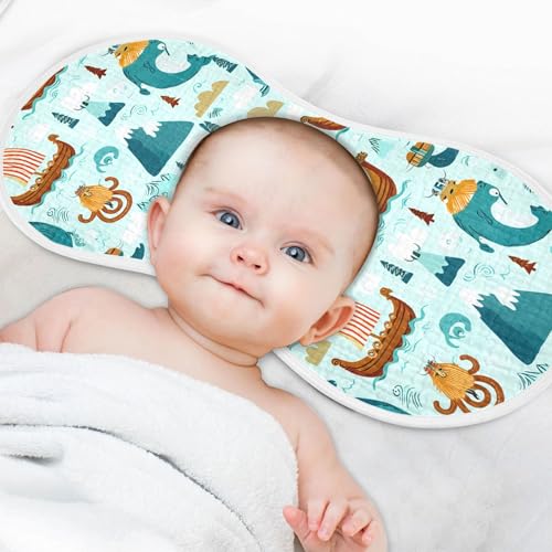 xigua Whimsical Viking Muslin Baby Burp Cloths Set of 4, Super Soft & Absorbent Burping Rags, Cotton Burp Clothes Shower Gift for Newborn, Baby Girls and Boys 6