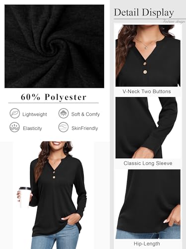 CATHY Womens Long Sleeve Shirts Dressy Casual Henley Tops Fall Fashion 2025 V Neck Button Up Blouses 2