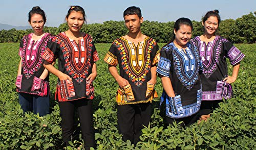 More information about RaanPahMuang Brand Unisex Bright African Black Dashiki Cotton Shirt