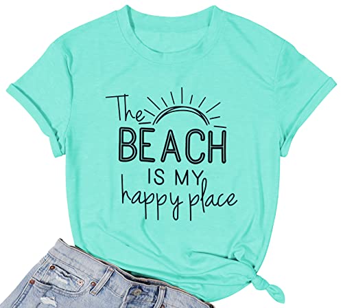 HOT ! Beach Shirt Women The Beach is My Happy Place T Shirt Short Sleeve Casual Summer Vacation Tees Top