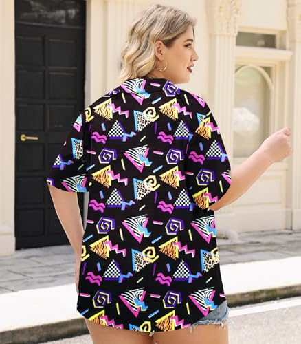 Plus Size 80s 90s Outfits for Women 90s Theme Party Disco Shirt 80s Hawaiian T-Shirt Retro Neon Button Down Blouse Tops 2