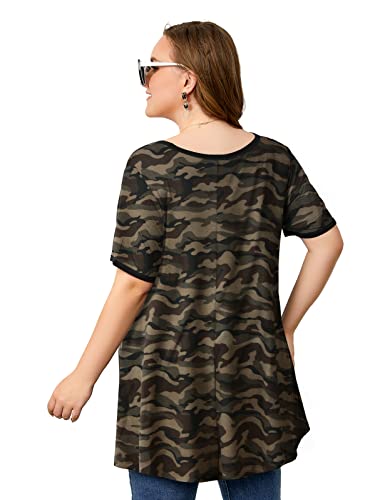OVERWORETY Short Sleeve Plus Size Tunics for Women Loose Casual Swing Tops Flowy T-Shirts 5