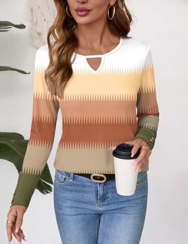 Romanstii Womens Long Sleeve Shirts Crew Neck Basic Tees Keyhole Button Down Blouses Fall Fashion Going Out Cute Tops 6