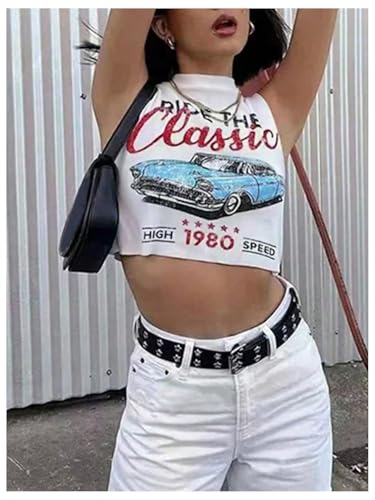 • Features: Car graphic, letter print, round neck, sleeveless, cropped tops, womens tops, fashionable