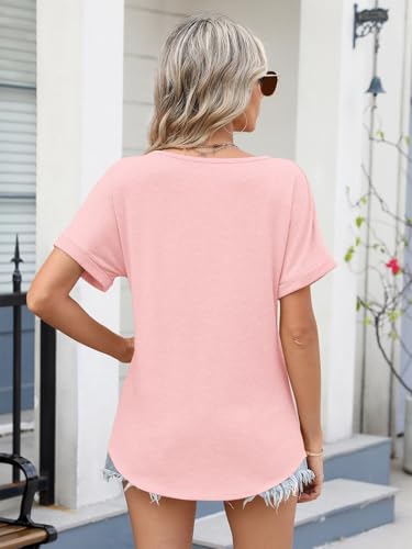 EADINVE Womens V Neck Rolled Sleeve T Shirts Curved Hem Short Sleeve Tops Summer Trendy Tees Loose Fit Tunic Shirts 2025 6