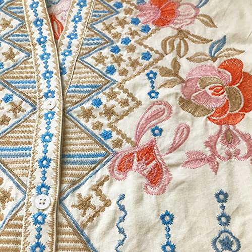 LauraKlein Mexican Shirts for Women Summer Casual Embroidered Tops Ladies Button Down Tops Peasant Tunic Loose Blouse 6