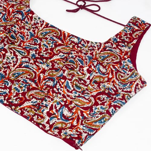 More information about Chandrakala Cotton Printed Blouses for Women sarees, Sleeveless Ajrakh Print Crop top Choli (B224-P)
