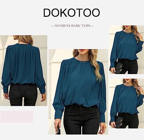 HOT ! Dokotoo Women's Tops Blouses for Women Casual Long Sleeve Shirts Crew Neck Bohemian Solid Color Spring Work Business