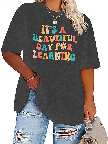 Plus Size Teacher Shirts Tops Women It's a Beautiful Day for Learning Tshirt Oversized Teach Tee Gift 4