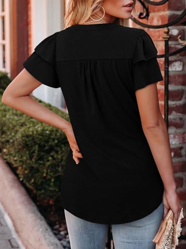 BETTE BOUTIK Womens Crewneck Short Sleeve Summer Tops Pleated Tunic Shirts S-3XL 3