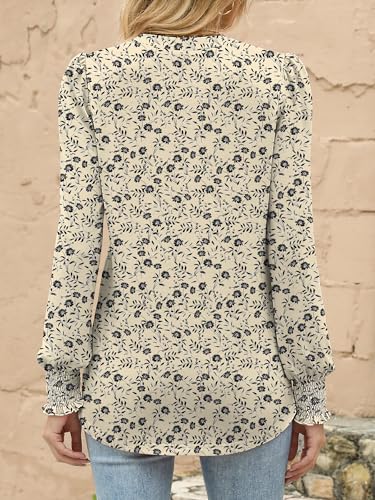 ANRABESS Womens Puff Long Sleeve Shirts Dressy Casual Blouses 2025 Fall V Neck Loose Fit Floral Business Work Tunic Tops 3