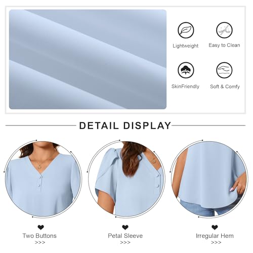 CATHY Womens Casual Summer Tops Dressy Petal Short Sleeve Chiffon Shirts Button Up V Neck Tunic Blouses 4