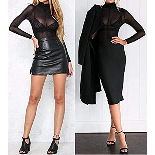 HOT ! Womens Sheer Mesh Tops Shirts, Long Sleeve Mock Neck See-Through Slim Ladies Blouse T-Shirt Clubwear