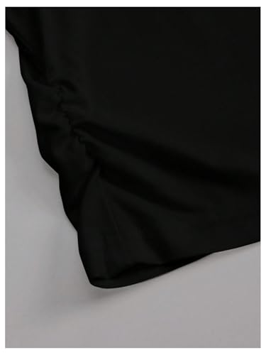 • Features: Short sleeve fitted tee shirt for women, collared, v neck, solid color, plain tee shirt, ruched details on the sides to create a slimming effect
