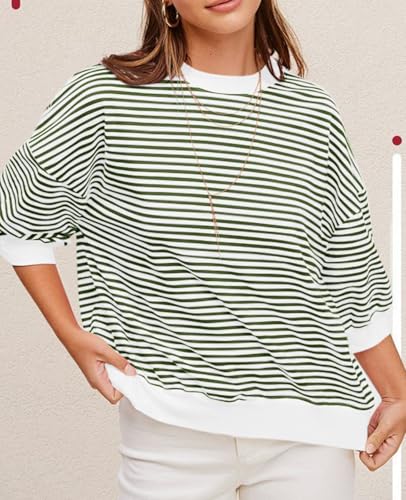 More information about Tankaneo Womens Puff Sleeve Striped T Shirt Oversized Cropped Summer Casual Cotton Tops Loose Fitting Crewneck Sweatshirt