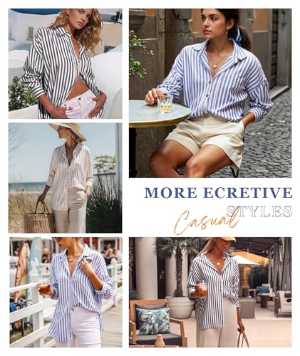 HOT ! Deer Lady Womens Striped Button Down Shirts Long Sleeve Oversized Loose Fit Casual Work Blouse Tops with Pocket