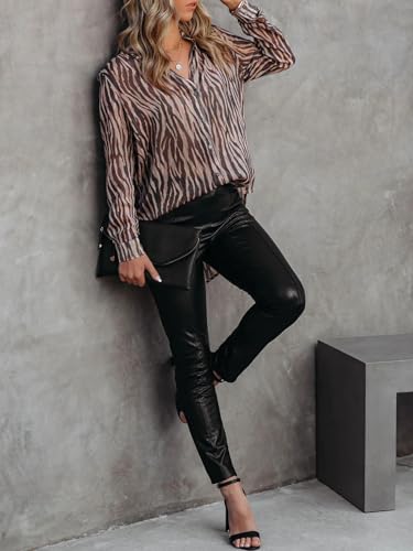 Mutitop Button Down Shirts for Women Dressy Casual Blouses V Neck Printed Boho Long Sleeve Collared Tunic Chiffon Tops 6