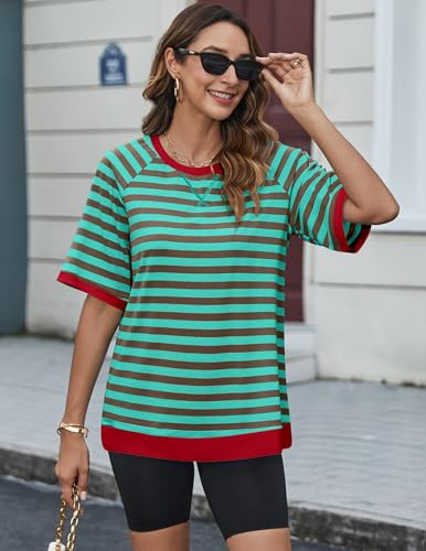 Zeagoo Women Striped T Shirts Oversized Crewneck Short Sleeve Tops Summer Casual Blouse Color Block Basic Tee S-XXL 5