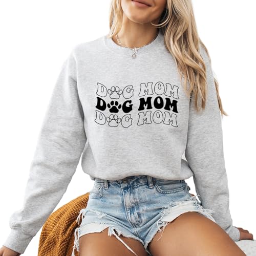 HOT ! Dog mom Women's Long Sleeve Crewneck Sweatshirt Dog Mama Letter Print Graphic Shirts Pullover Tops
