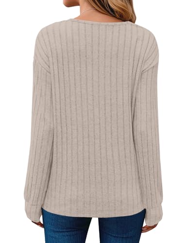 JUSTFASHIONNOW Long Sleeve V Neck Shirts for Women Fall Tops Lightweight Sweaters Dressy Casual Tunic Tops 2025 Outfits 3