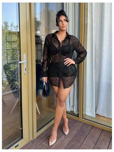 More information about WDIRARA Women's Mesh See Through Blouse Long Sleeve Button Front Sexy Shirt Tunic