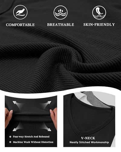 ATHMILE Women Short Sleeve V Neck Ribbed Knit Fitted Shirts Basic Tees Tops 2025 Summer Casual T-Shirts Going Out Outfits 4