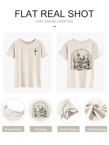 • Fur description: OUNAR Western Tshirts Shirts for Women Cowboy Country Sweatshirt Proverbs 3 : 5-6 Bible Verse Trust in The Lord with All Your Heart and He Will Direct Your Paths Christian Tee Shirts Short Sleeve Tops Apricot S