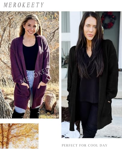 HOT ! MEROKEETY Women's 2025 Fall Open Front Chunky Knit Sweater Oversized Lantern Sleeve Cardigan Outwear