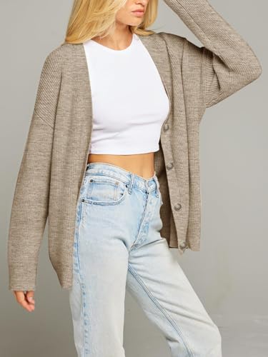 MEROKEETY Women's Cardigan Sweaters 2025 Fall Open Front Oversized Button V Neck Loose Soft Knit Outwear 6