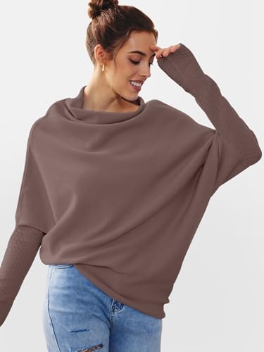 • SOFT MATERIAL: Made of 50%Viscose+30%polyamide+20%polyester,this loose fit, soft, cozy and breathable long batwing sleeve fall lightweight casual blouse make you do you want.The womens trendy oversized tops is great for Spring, Autumn and Winter