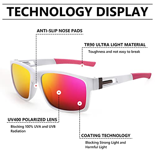• Classic Square Frame Design - The fashionable and classic square frame with new frame colors, dazzling color lenses and frame decoration design is cool and trendy, bringing a new experience to your outdoor activities.