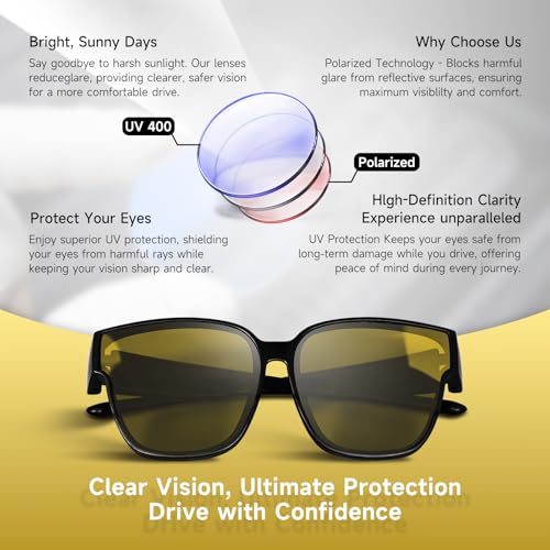 • Crystal Clear Night Driving Vision: With 1.1 polarized yellow lenses, these glasses dramatically reduce glare from headlights and streetlights, enhancing contrast and clarity for a safer, more comfortable night driving experience.