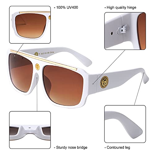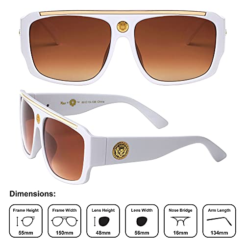 HOT ! Kleo Empire - Flat Top Frontal & Side Coin Lion Head Medallion Square Hip Hop Sunglasses