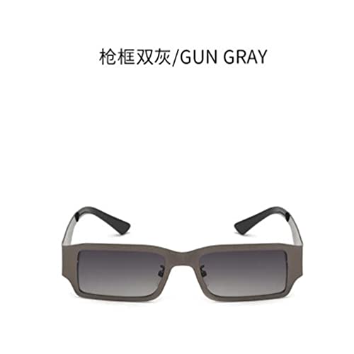 HOT ! Square Small Frame Steel Leather Metal Sunglasses Personality Hip-hop Anti-UV Sunglasses (Gun Frame Gray Flakes)