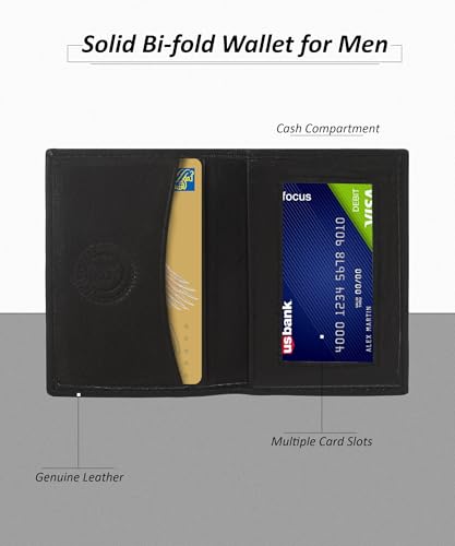 HOT ! Leatherboss Genuine Leather Small Slim Bifold Wallet | Credit, Debit, ID Card Holder | Compact & Stylish with Clear ID Windows | Gift for Men, Black