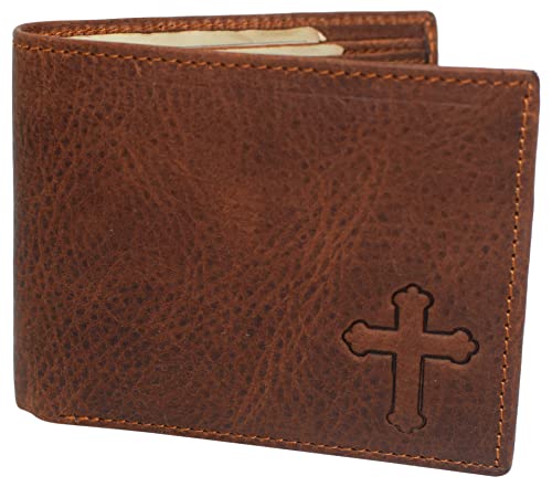 More information about Real Genuine Leather RFID Blocking Wallets Mens Wallet Bifold Classic Engraved Logos (Cross)