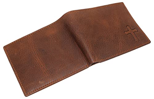 Real Genuine Leather RFID Blocking Wallets Mens Wallet Bifold Classic Engraved Logos (Cross) 5