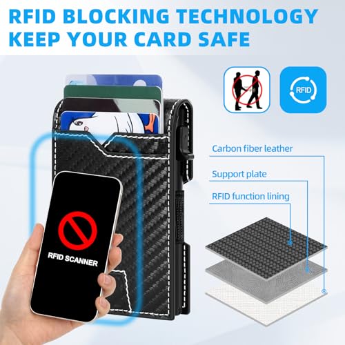 Carbon Fiber Wallet for Men - Slim Bifold RFID Blocking Wallet, Aluminum Credit Card Holder, Money Clip, 10 Card Slots, Gift for Adults 1
